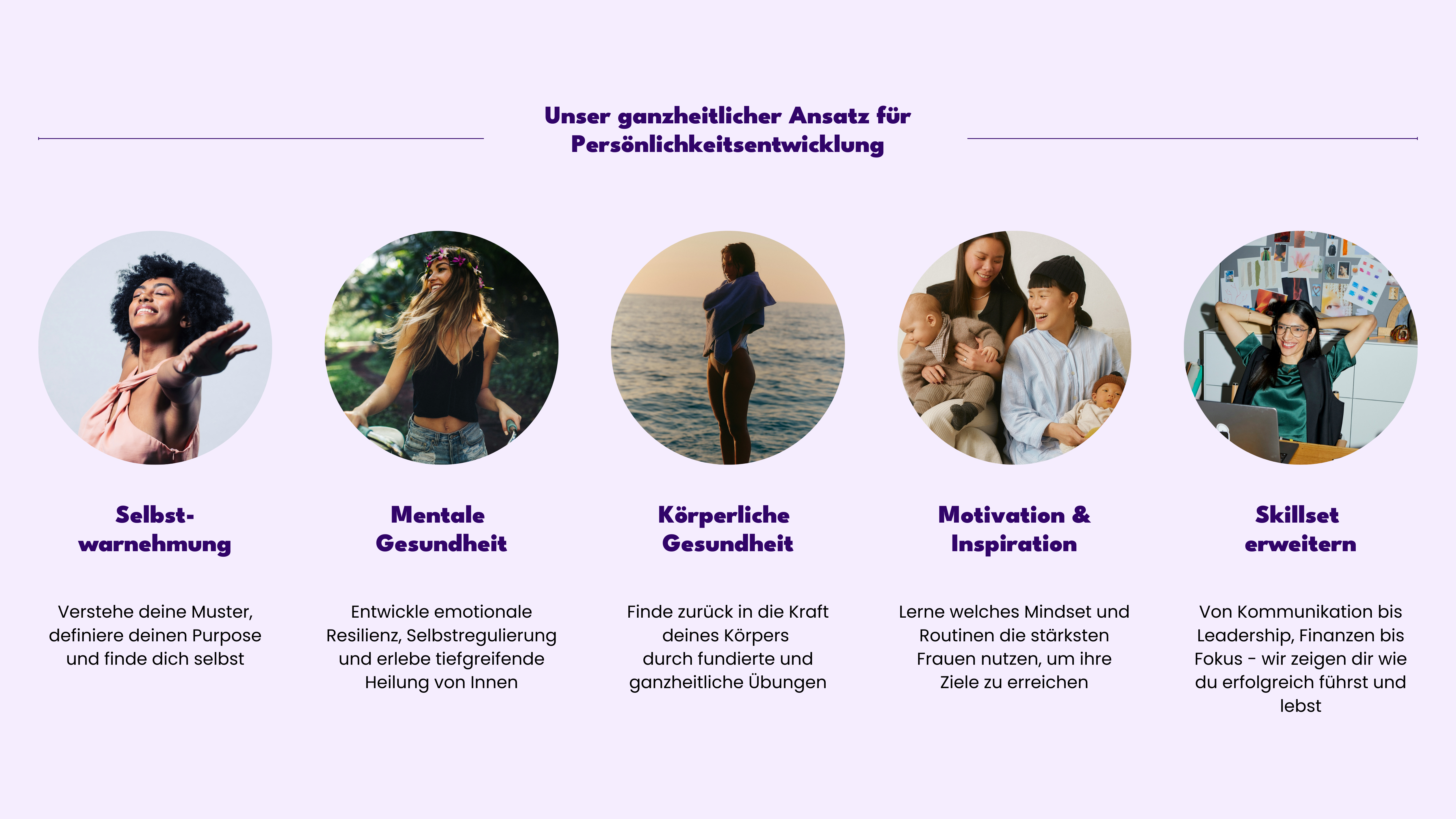 Wir bringen Dir renommierte Expertinnen, Bestseller Autorinnen und erfahrene Coaches aus den Bereichen Selbstwahrnehmung, Mentale & Körperliche Gesundheit, Inspiration & Motivation zur Erweiterung deiner Fähigkeiten direkt nach Hause!